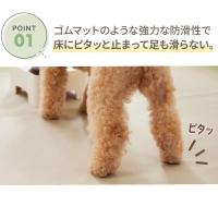 室内歩行、トイレまでの移動、食事中の踏ん張りをサポートする強力な防滑シート。ウレタン樹脂が吸い付くように吸着し、足腰に不安を抱える高齢犬の足も滑りません。ハサミで自在にカットでき、水洗いもOK。従来品より17cm幅が広くなりました。