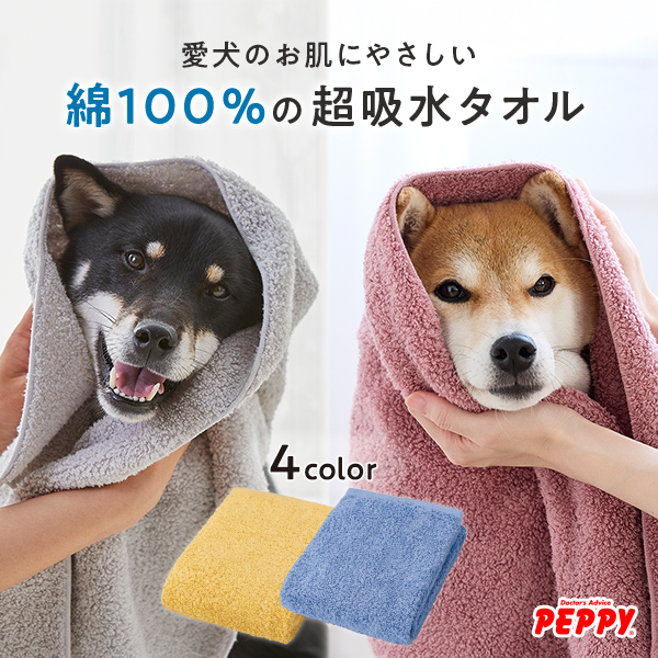 綿100%のふわさらドライタオル 犬 ペット タオル 綿 バスタオル 犬