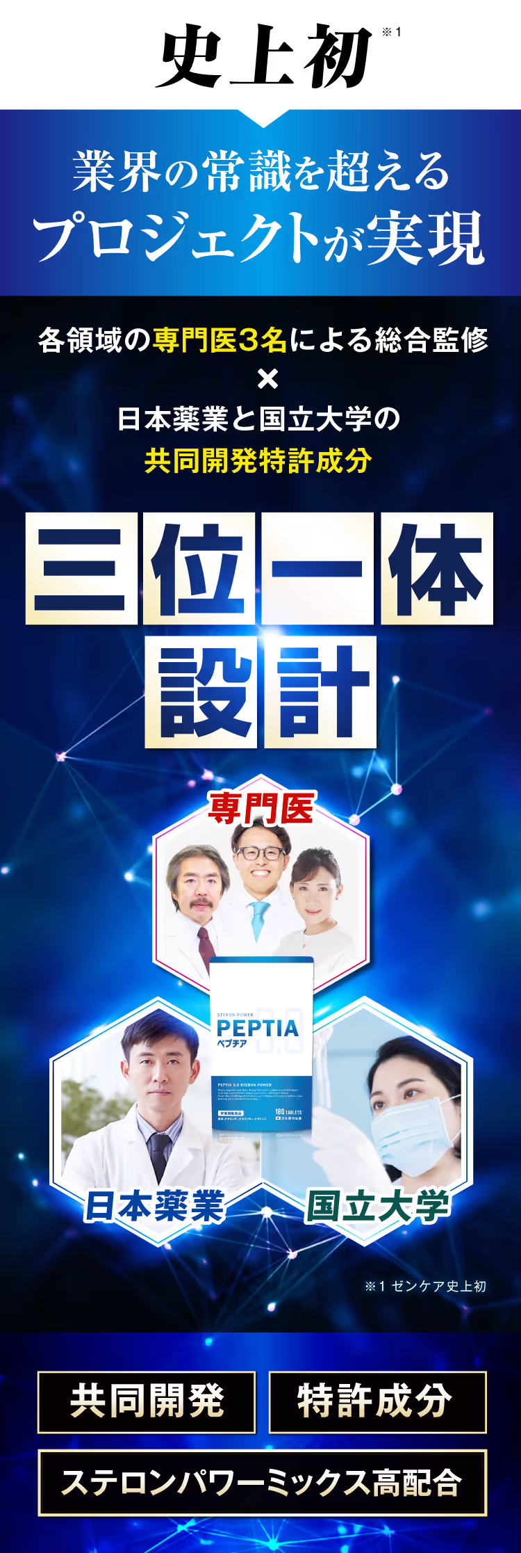 男性特有の悩みの専門医ともいえる現役泌尿器科の医師が開発監修したメンズサプリ『ペプチア3.0』