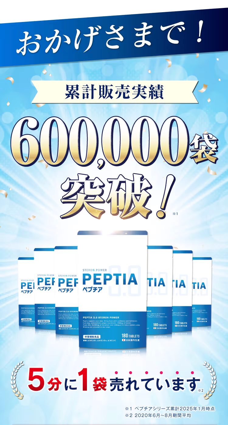 また、共同開発による特許成分もペプチアの特徴で、医薬品メーカーと国立大学の共同開発による特許成分「ステロンパワーミックス」が配合されています。