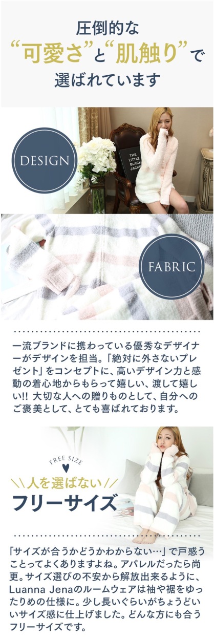 着るだけでほっこりする優しい肌触りでお家でのリラックスタイムを可愛く快適に過ごせます。