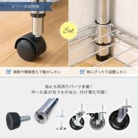 | 内容 明細 | 棚板×5枚 ポール×4本 スリーブ×20組 アジャスター×4個 キャスター×4個(内2個はストッパー付) |