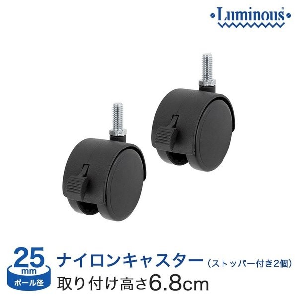 ルミナス (25mm) ナイロンスキャスター ストッパー付 (2個セット) 取付時高さ6.8cm IHL-CSL2P スチールラック