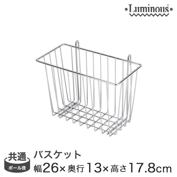 ルミナス luminous スチールラック ラック スチール製 25mm 19mm ポール共通バスケット 幅26 (幅21×奥行9.5×高さ18cm) IHT-2010BS