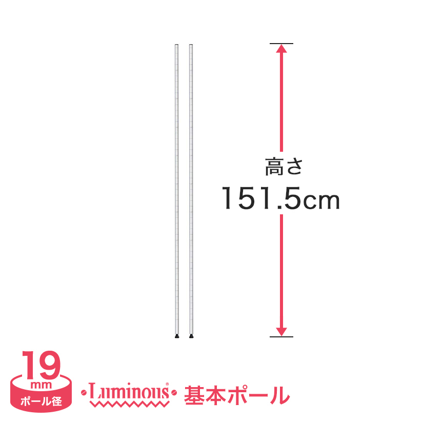 スチールラック パーツ ルミナス ラック ポール 基本ポール 高さ151.5cm 2本組 19mm luminous スチール製 19P150-2
