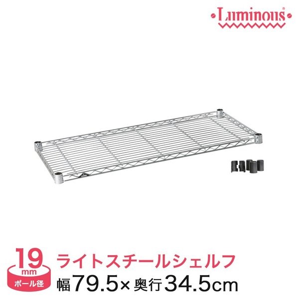 信頼のブランド ルミナスの19mmポール用スチール棚、オフィス・リビング・キッチン・ガレージなどの収納に最適です!ビジネスや一人暮しからホームユースまで、幅35cm から90cmまでの豊富なサイズバリエーションからピッタリのサイズであなただけのラックを作れます!!業務用什器として飲食店のホール・厨房やお店の陳列棚などでも大好評!ルミナス luminous スチールラック ラック スチール製 19mm /スチール棚(79.5幅×34.5行タイプ)[スリーブ付] ST8035