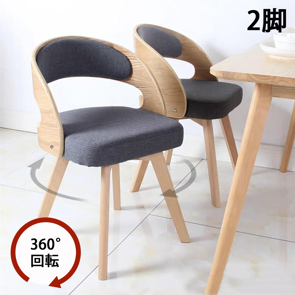 ダイニングチェア 2脚セット 回転式 ダイニング椅子 回転チェア リビングチェア 天然木脚 傷防止 デスクチェア 回転椅子 コンピュータチェア リビング デザイン