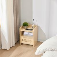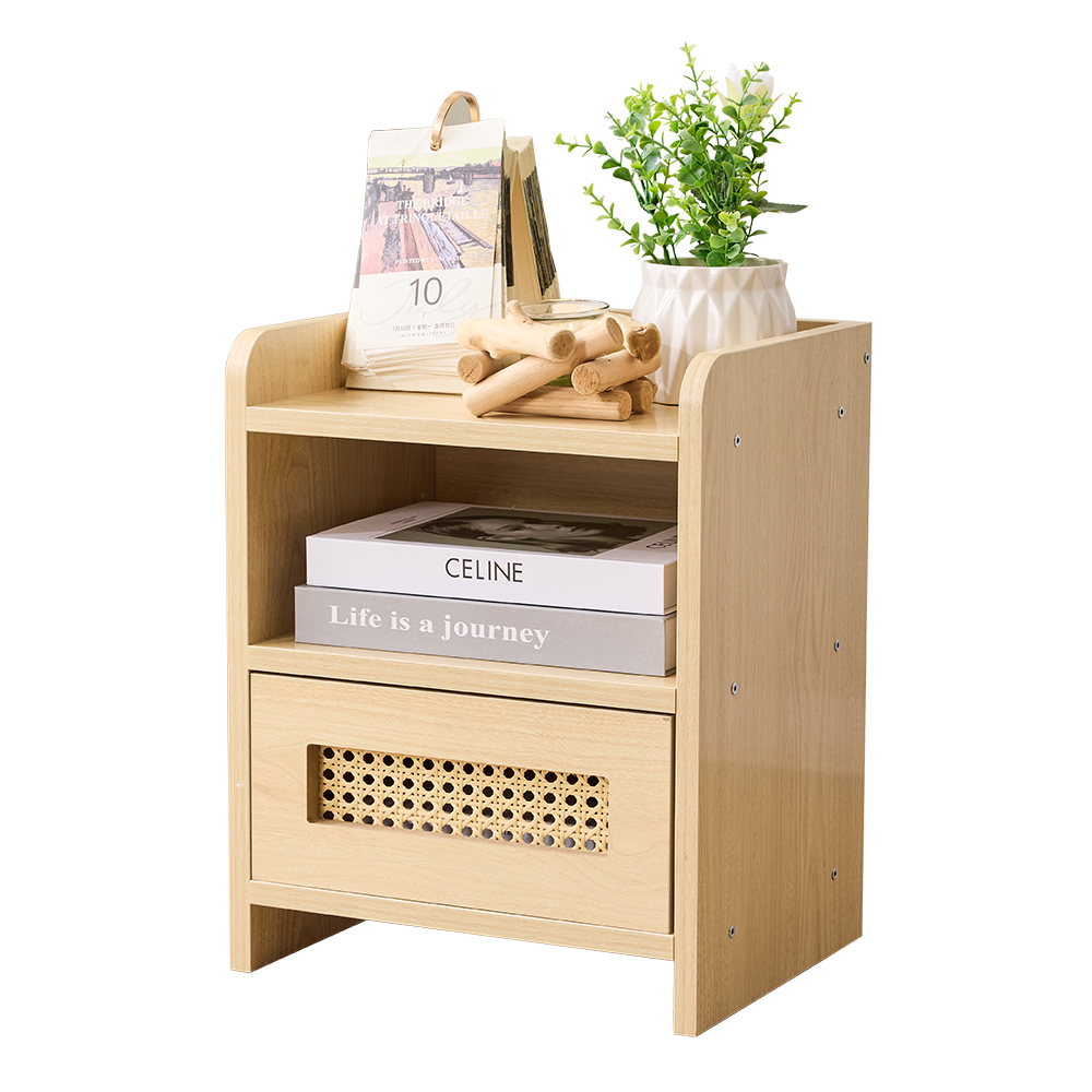 ナイトテーブル ベッドサイドテーブル 引き出し付き 籐編み おしゃれ 木製 ベッド横 ソファサイドテーブル ベッド周り収納 ミニテーブル 物置台 高さ40cm