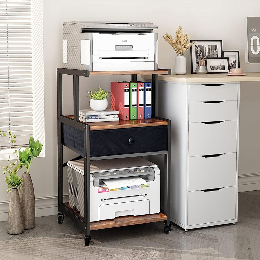 プリンター台 キャスター付き 台 プリンターラック 3段 デスクワゴン サイドテーブル 棚 木製 引き出し付き 可移動ベッドテーブル