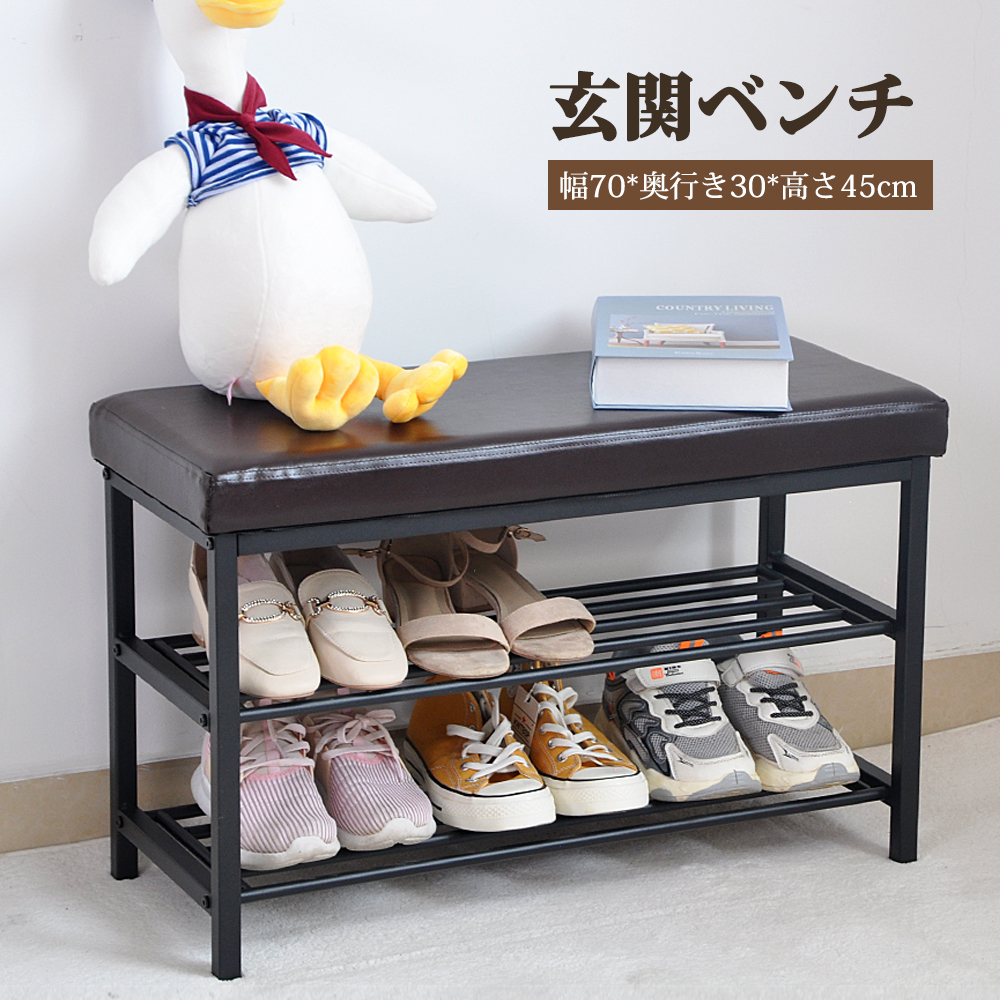 玄関ベンチ シューズラック 収納ベンチ 玄関椅子 玄関収納 3段 座面クッション 靴収納 腰掛け ベンチ 玄関スツール 収納スツール エントランスベンチ 靴棚