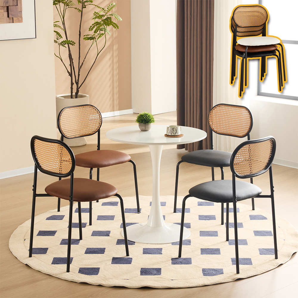 ダイニングチェア ラタンチェア ブラウン ブラック 椅子 肘無し イス 籐編み デスクチェア オフィス カフェチェア 食卓チェア リビング 在宅ワーク 宿泊施設