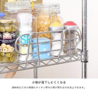 シェルフの左右はもちろん、最上段に安全柵として設置すれば大きい荷物を置いても安心です。