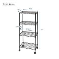 | 内容 明細 | スチールシェルフ(棚板)×4枚 スリーブ(棚板取付用部品)×16組 ポール×4本 ナイロンキャスター(ストッパー付)×2個 ナイロンキャスター(ストッパーなし)×2個 標準アジャスター×4個 スパナ×1個(キャスター取付用) |