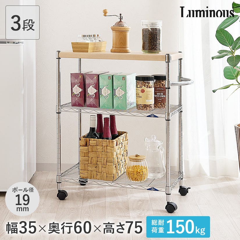 | 商品 シリーズ | ルミナスフィール 木棚付き キッチンワゴン 幅60 3段 |