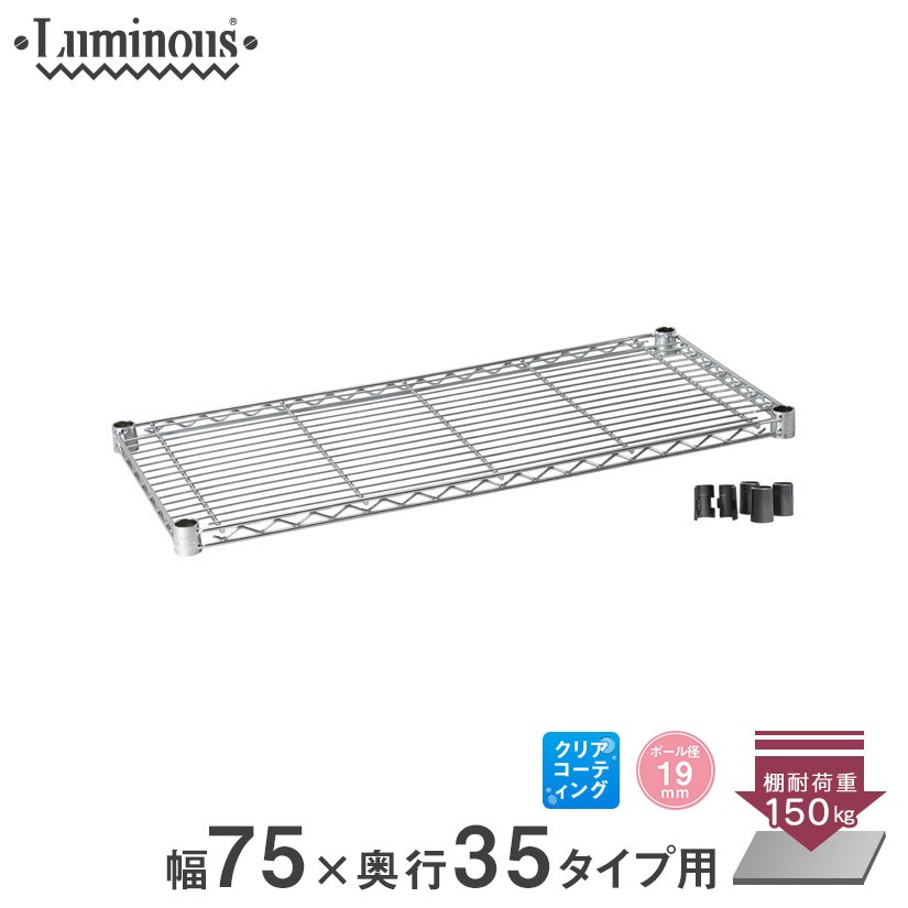 ルミナス スチールラック パーツ シェルフ 棚板 (19mm) スチール棚 幅75 幅74.5×奥行34.5cm スリーブ付 ST7535