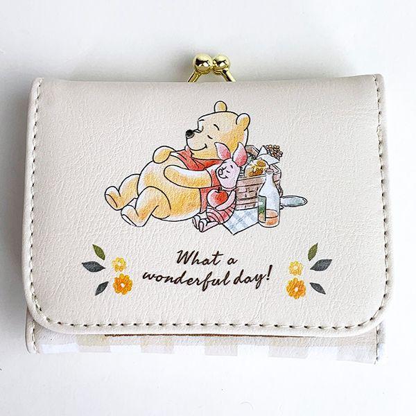 くまのプーさん Picnic Series POOH コンパクト財布 コインケース 財布 ケース 小物入れ コンパクト ベージュ