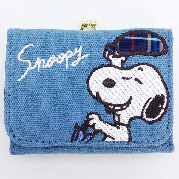 大人気スヌーピーより、帽子&ジョー・クールシリーズのコンパクト財布♪刺繍チェックのスヌーピーはちょっと大人な雰囲気☆幅広い世代に使用しやすいイラスト。