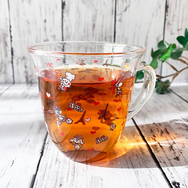 当店限定 水森亜土 耐熱ラウンドマグ当店限定販売!亜土ちゃんのイラストをあしらった、透明度の高い耐熱ポットです。アートはフレンチのチラシ柄。紅茶が映える色合いを考えて作りました。マグは腰高で、つるりとしたラインの美しい形です。きれいな発色の秘密は国内での焼き付けです。ガラスにもこだわりました。同時発売の水森亜土デザインのティーポット、2種の国産紅茶とセットで水森亜土の世界観に浸って、素敵なティータイムをお楽しみください。