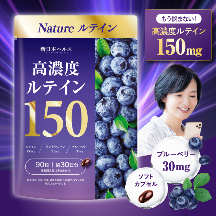 ルテイン 高濃度ルテイン150 ブルーベリー30mg ゼアキサンチン7.5mg GMP認定工場 国内製造 サプリメント 目 新日本ヘルス