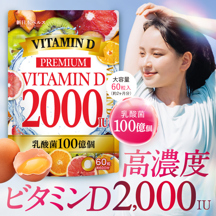 ビタミンD プレミアムビタミンD 2000IU 美味しい 乳酸菌100億個 60粒 約60日分 GMP国内製造 サプリメント 新日本ヘルス