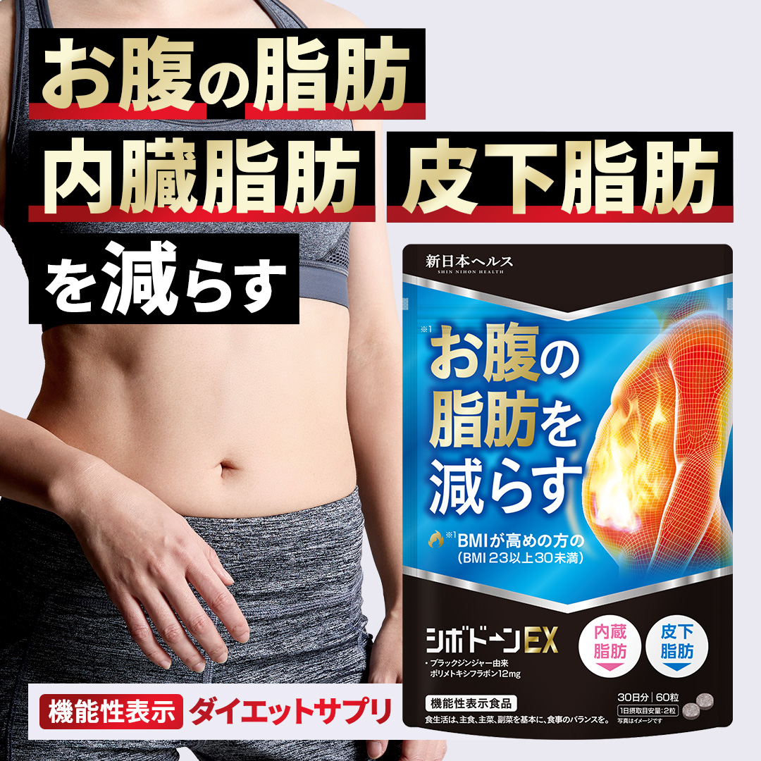 ダイエット シボドーンEX お腹の脂肪 皮下脂肪を減らす サポート ブラックジンジャー サプリ 機能性表示食品 60粒