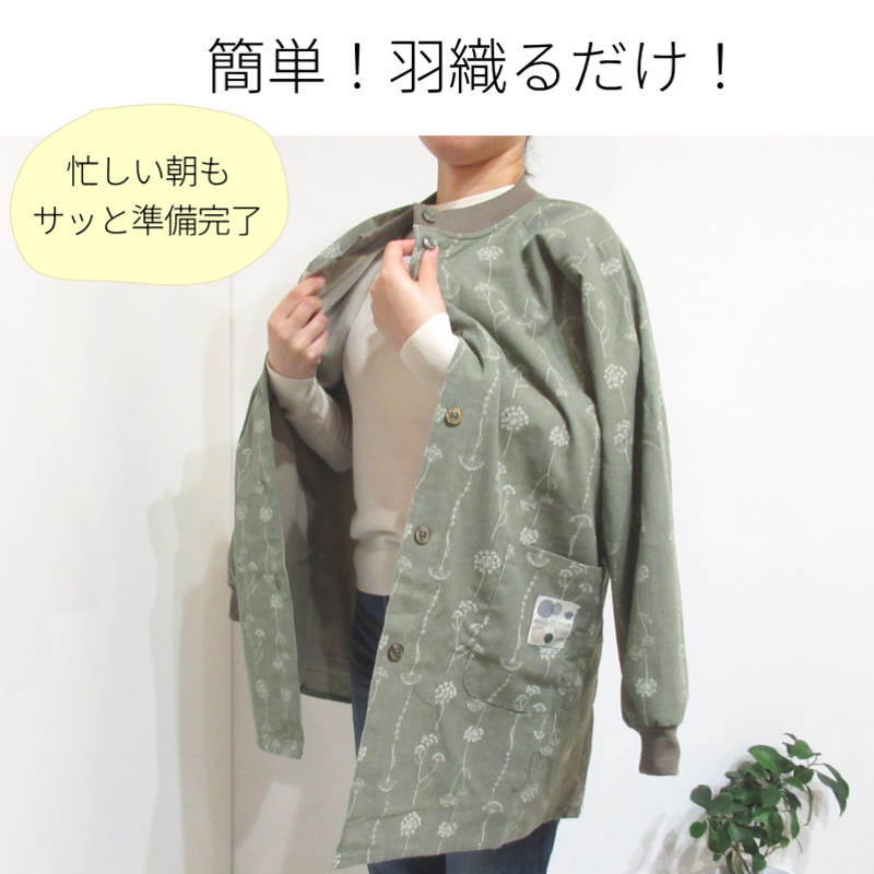 おしゃれな羽織り感覚で、急な来客にもそのまま対応できます。