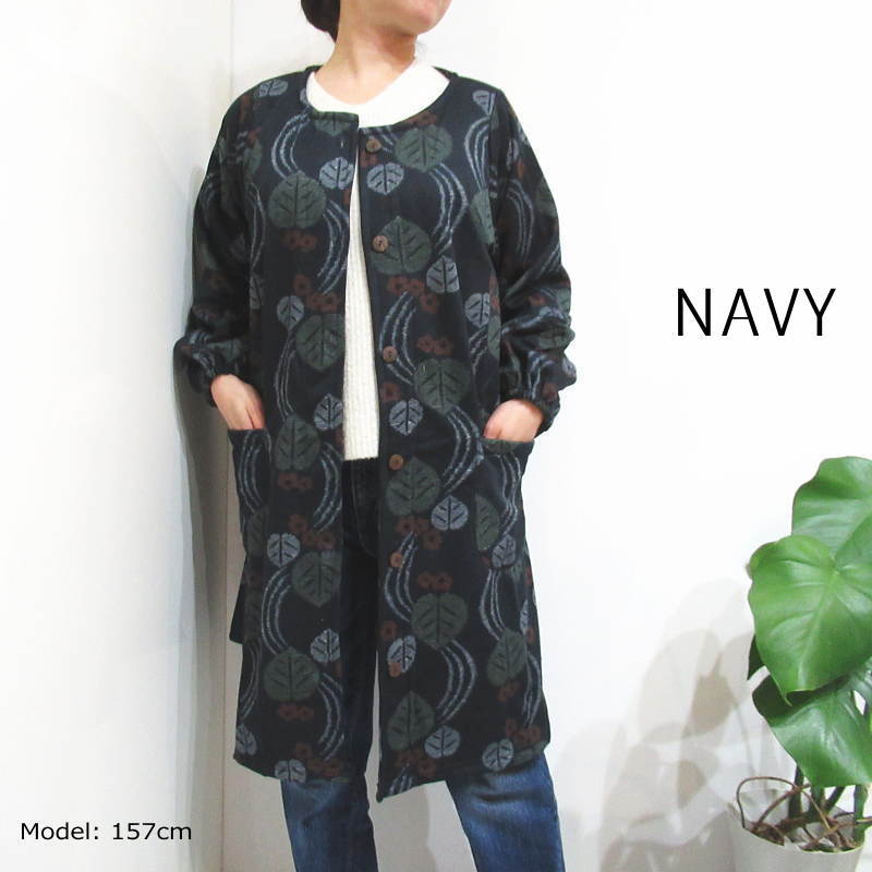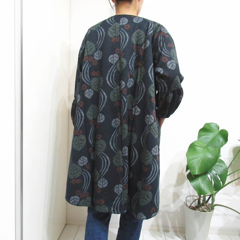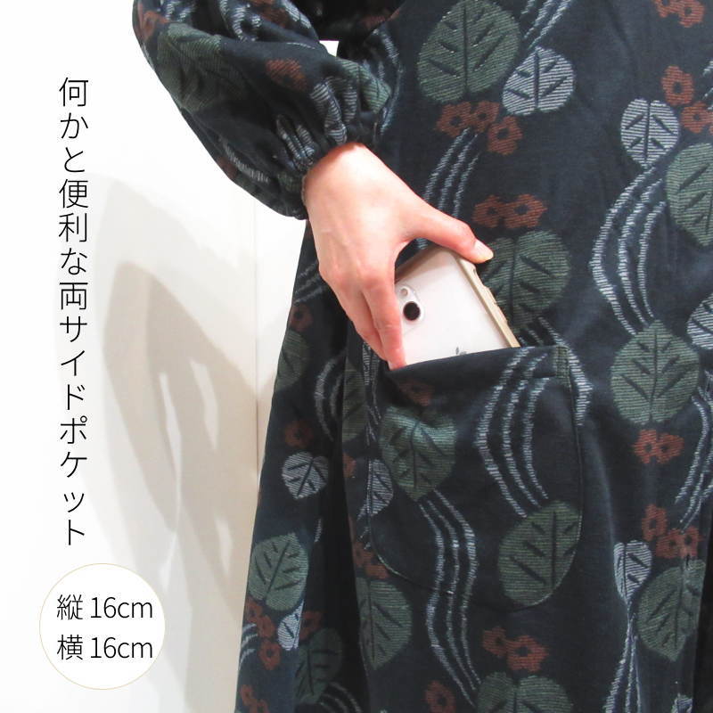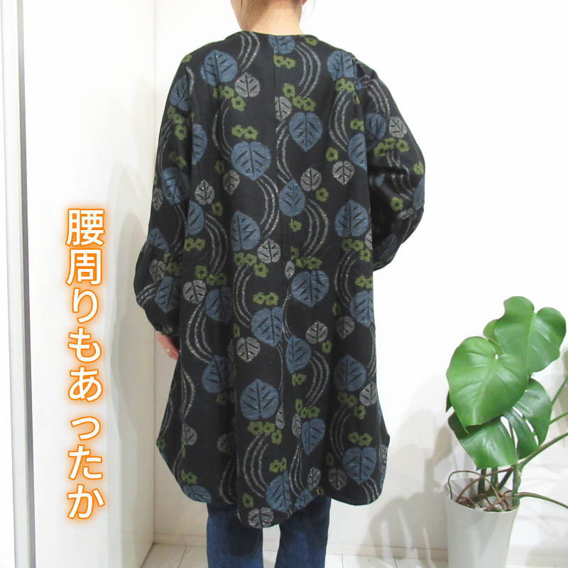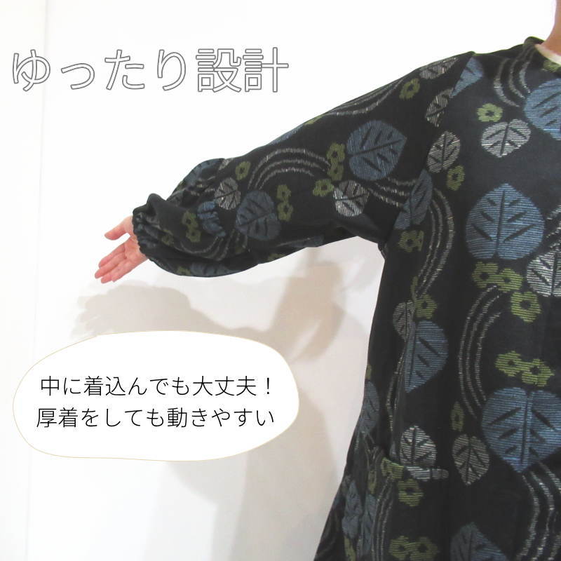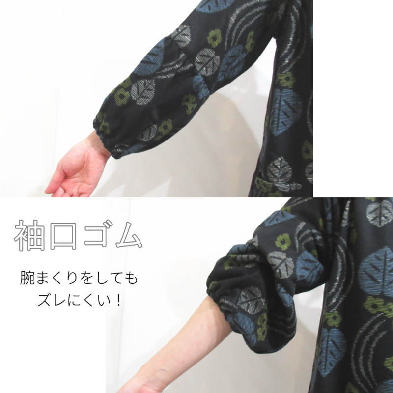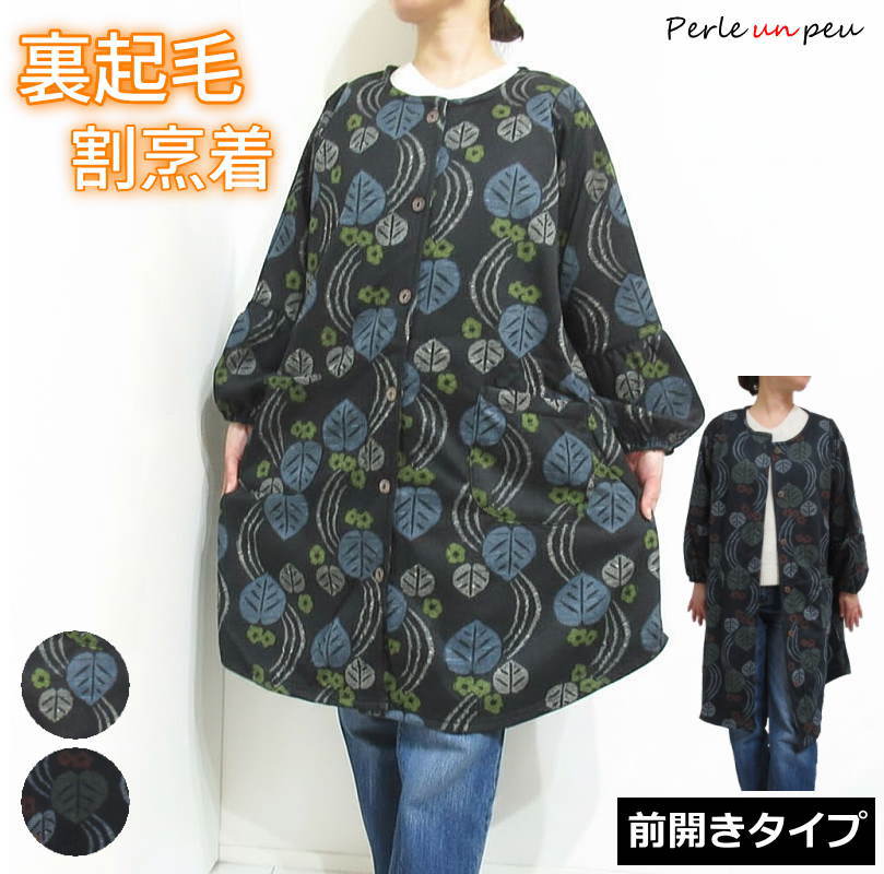 割烹着 冬 冬用 暖かい おしゃれ 裏起毛 シャギー スモック かっぽう着 かっぽうぎ エプロン 黒 ネイビー 長袖 前開き チュニック あったか 防寒 24-576222