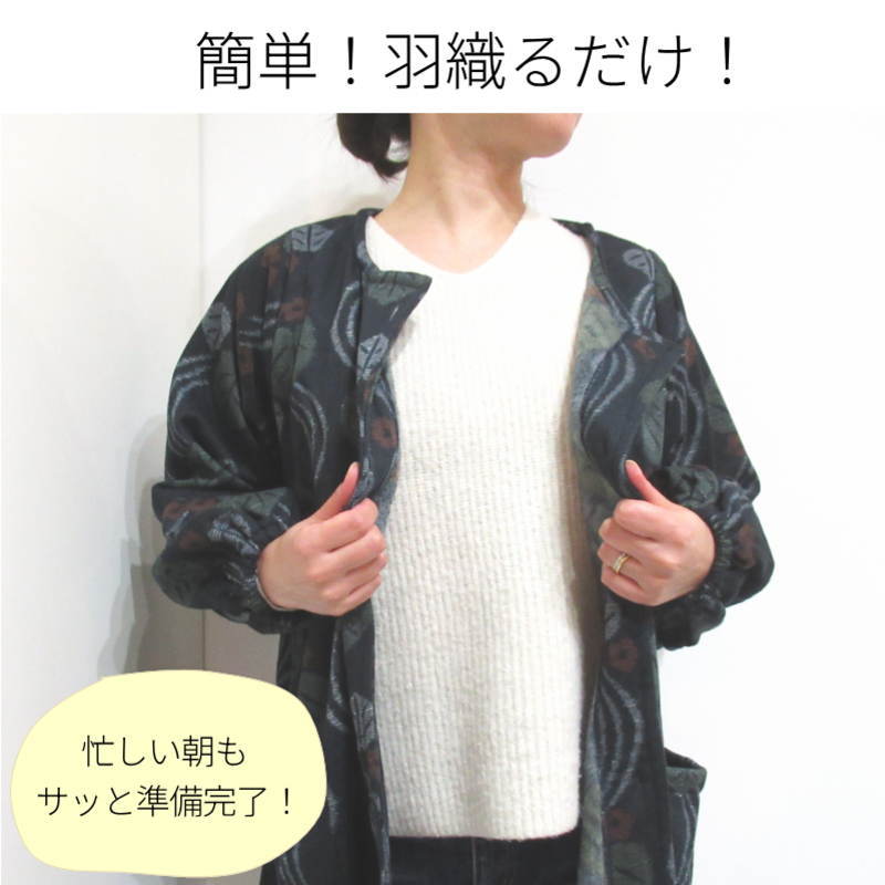 全開できる前ボタンで、忙しい時でもサッと羽織れます。