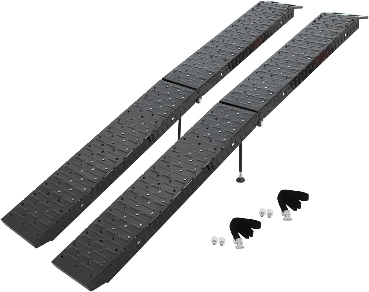 折り畳み式 軽量強化版 ラダーレール バイクスロープ 2本組 黒 モーターサイクルスロープ ニッケル 耐荷重 400kg スタンド付 軽トラ 積み込み トランポ