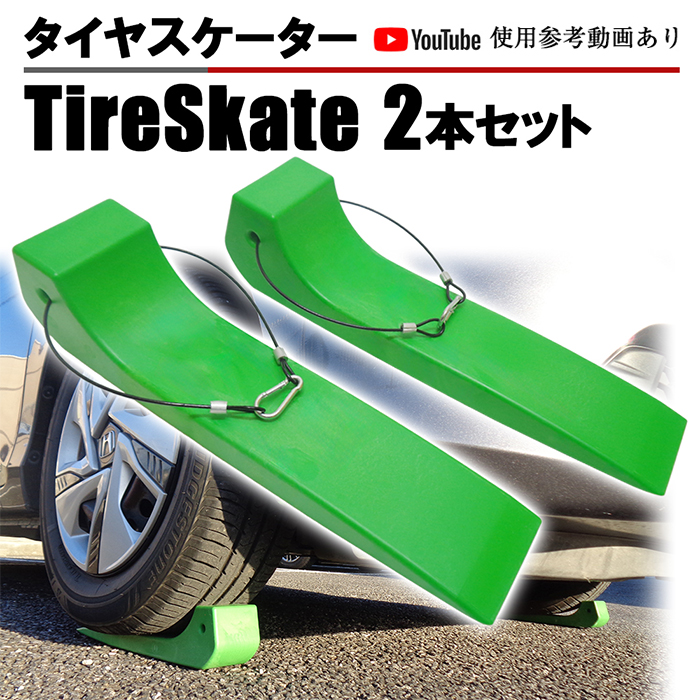 タイヤスケーター ライムグリーン 2個セット タイヤスケート カラビナワイヤーロープ付き 積載車 セルフローダー レッカー車向け レッカー用品 ドーリーサポート