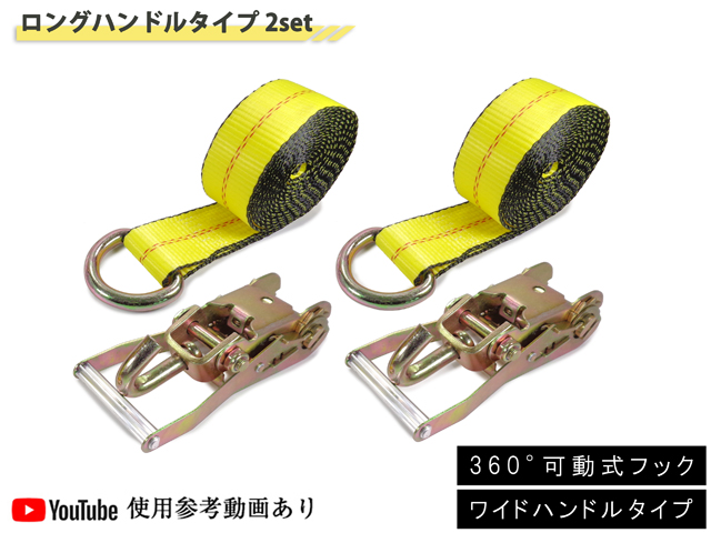 ラッソーストラップ ラチェットタイダウンシステム ロング ワイド ハンドル 1.6トン 2セット スイベル式 タイヤ 車 積載車 固縛 固定 ラッシングベルト レッカー