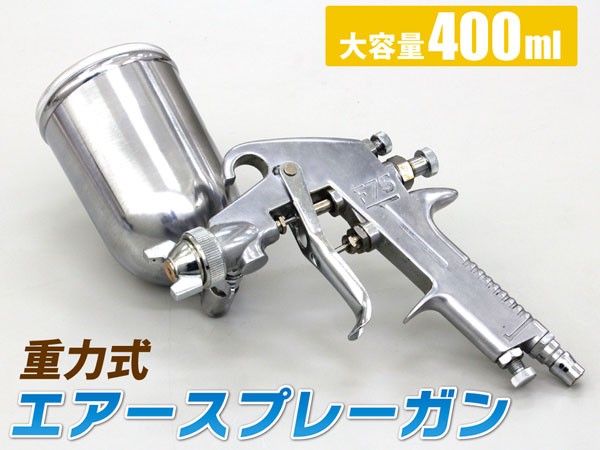 エアースプレーガン 塗装ガン プロ仕様 ノズル口径 1.3mm 上カップ 400ml 重力式 パターン調整 エアー量調整 吐出量 カップ角度調整可能 60日安心保証付