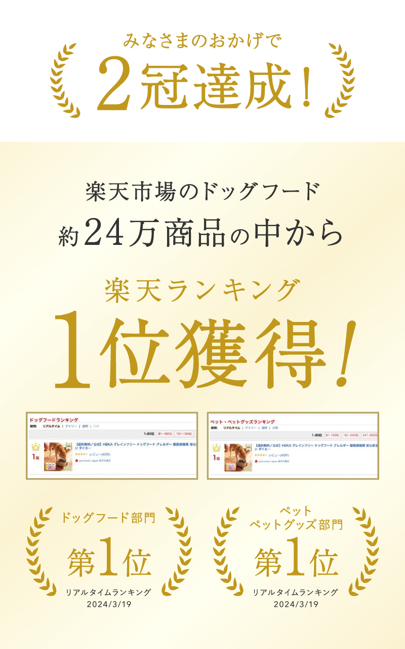 | 【低アレルゲンな食材と人工添加物不使用!愛犬の健康を守るための高品質ドッグフード】 |