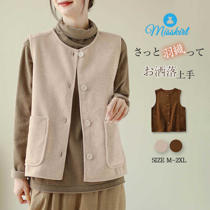 ベスト ジレ レディース ジレ ノースリーブ トップス ジレベスト ベスト 春 秋 冬 大きいサイズ 前開き ベストジレ ベスト 重ね着 レイヤード風 カーディガン 大人 カジュアル アウター ジャケット シンプル