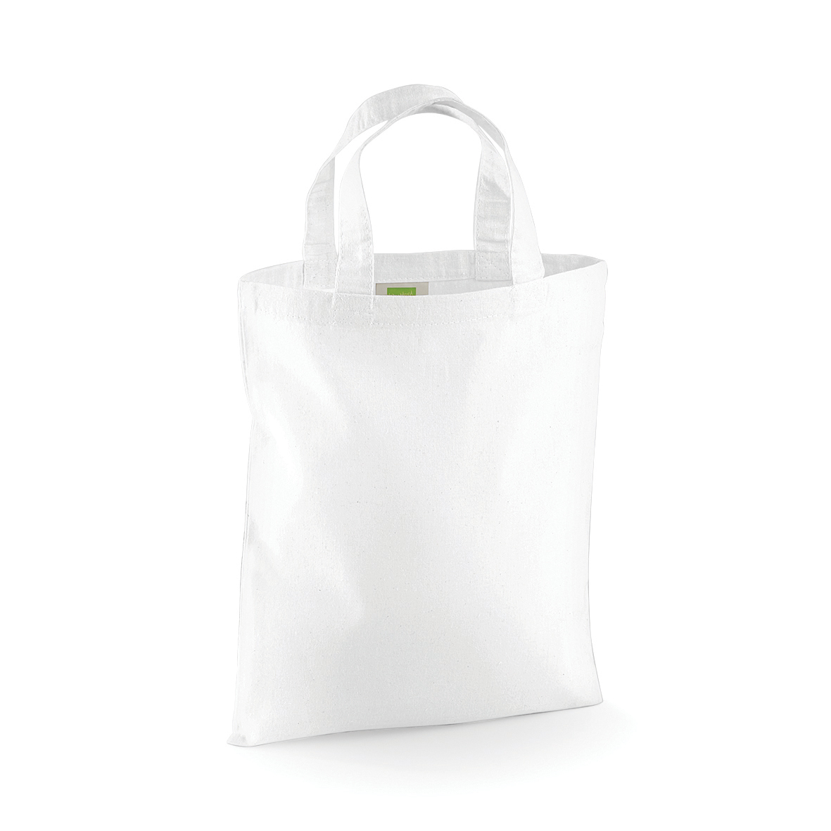 ミニサイズコットンショッパー/トートショルダーバッグ。重量:約35g。素材:綿100%。サイズ:約32.5H x 26D cm。プリントエリア:約26 x 22cm。容量:約4リットル。