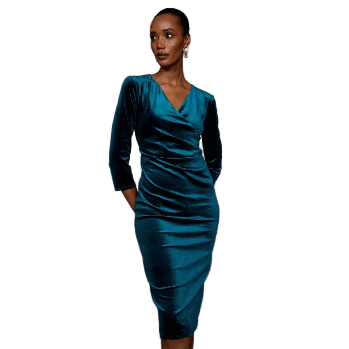 (プリンシプルズ) Principles レディース ベルベット ラップワンピース パーティードレス DH2832 (グリーン)