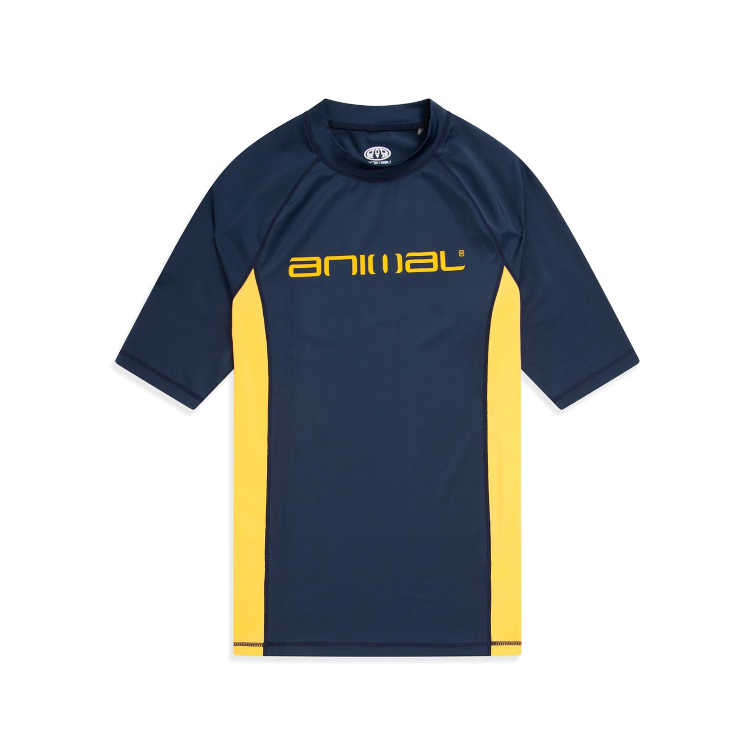 Animalメンズサイズ(ヌード寸法胸囲/ウエストcm): XXS(<84/<70)、XS(84-90/70-76)、S(90-96/76-82)、M(96-102/82-88)、L(102-110/88-96)、XL(110-118/96-104)、2XL(118-126/104-112)、3XL(126-134/112-120)、4XL(134-142/120-128)。85%リサイクルポリエステル、15%エラステーン。デザイン: コントラスト切替、ロゴ。ネックライン: クルーネック。プルオーバー。素材テクノロジー: 塩素耐性、耐久性、柔軟、軽量、クイックドライ、耐塩水性。サステナビリティー: 使用済みのペットボトルを利用したREPREVE繊維。袖のタイプ: 半袖。UVプロテクション(UPF 50+)。