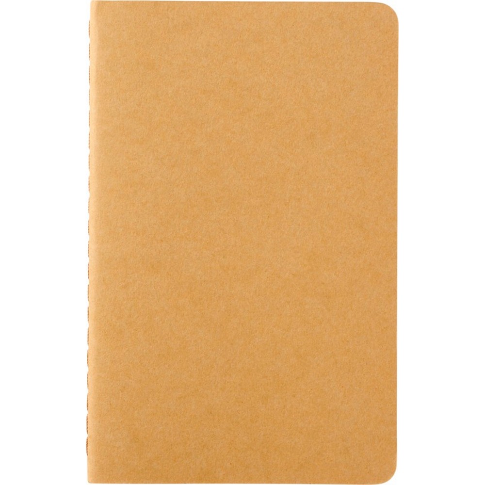罫線入りアイボリーページ64枚 (70gsm)。最後の16枚は切り離せます。角に丸みをつけたカードボード製カバー。背表紙にステッチ入り。ノートやメモを収納できるフラップ付き。L: 14cm、W: 9cm。