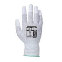 Portwestサイズ(手の平周り 目安cm): XXS(13cm)、XS(15cm)、S(18cm)、M(20cm)、L(23cm)、XL(25cm)、2XL(28cm)、3XL(30cm)、4XL(33cm)。カーボン繊維、エラステーン、ポリエステル、PU(ポリエステル)。13ゲージ、コート加工。ライニング: 優れた通気性、シームレス。デザイン: コントラストカラーディテール、ロゴ、テキスト。素材テクノロジー: 帯電防止。安全規格: ANSI/ISEA 105: 2016 耐切創性レベルA1、CE認証、EN 16350:2014 パス レベルR < 1.0 x 108 Ω、EN 388: 2016 + A1: 2018 114XX、EN ISO 21420: 2020 操作性 5、IEC 61340-5-1:2016 パス、UKCA(英国適合性評価) 。適した用途: 静電気対策。耐摩耗性。細かい作業に対応。パッケージ: リテールパッケージ。