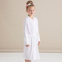 実寸(身幅/着丈cm): 3-4歳(37/70)、5-6歳(40/76)、7-8歳(43/82)、9-10歳(46/88)、11-13歳(49/94)。子供用バスローブ。軽量。ベルトつき。ショート丈。ハンガーループ。180gsm。素材:リングスパンコーマコットン100%シングルジャージー。液温40度以下で洗濯機洗い可。漂白剤使用不可。タンブラー乾燥禁止。アイロン仕上げ禁止。ドライクリーニング不可。色移りを避けるため、同系色のものと洗ってください。大変危険ですので、タバコ、ヒーター、コンロなど火気のそばでは絶対に使用しないでください。