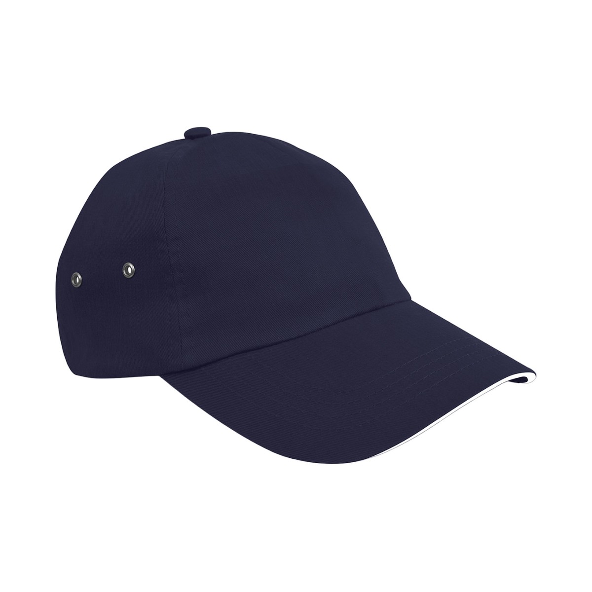 素材: コットン100%。デザイン: コントラストディテール。5パネルデザイン、ロープロファイル、メタルアイレット、カーブバイザー、サンドイッチバイザー、シームレス、ステッチライン。留め具: 調節可能なバックル。刺繍、転写プリント向け。