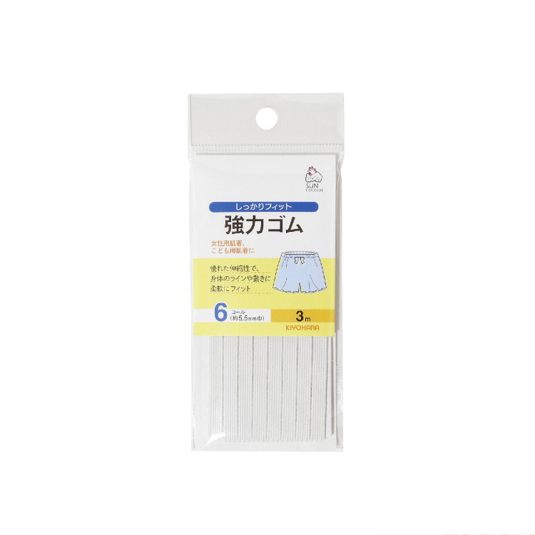 サンコッコー 強力ゴム 3m巻《8コール》(SUN41-12)しっかりフィット、肌着やスカート、スポーツウエアに