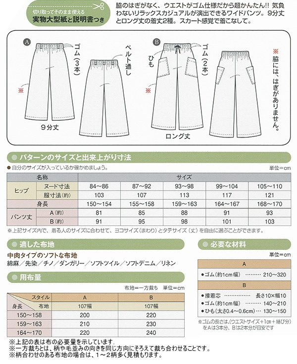 * 大人服型紙 イージー ワイドパンツ *
