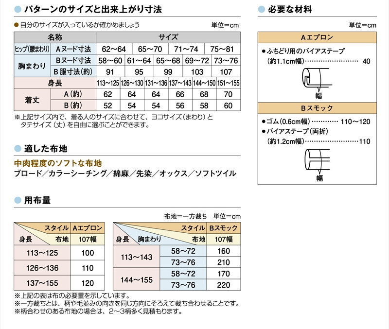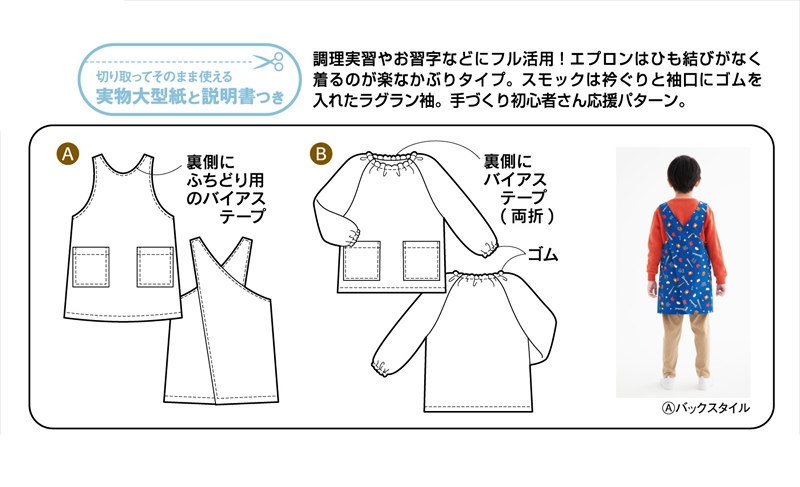 * 子供服型紙 入園入学・小学生エプロンとスモック(6073) *学校の授業や習い事、お家のお手伝い用など、使うシーンに合わせて選べるエプロンとスモック。