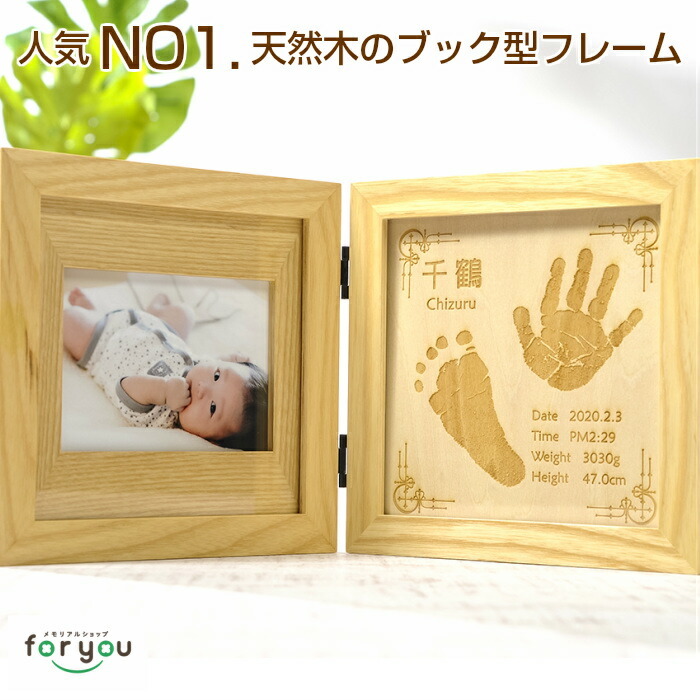 ★フォトフレームサイズ/縦176mm 横355mm 厚さ20mm(開いた状態 ) ★彫刻面サイズ/縦140mm 横140mm ★材質/ナチュラル:フォトフレーム・・・アッシュ材 彫刻面・・・シナベニヤ ブラウン:フォトフレーム・・・チーク材 彫刻面・・・コルク ★彫 刻/両 手足 足形のうちいずれか2つ お名前 生年月日 身長 体重 装飾デザイン ※彫刻の情報に関しましては、お申し込み後、弊社から送らせていただくお仕立て券(お申込書)にご記入ください。 ★写真サイズ/L版×1枚 (縦横どちらでも可) ※写真は自由に差し替えできます。 〜お仕立券について〜 ★お仕立券はご注文確定後即日、ご指定の送付先にメール便でお届けします。 〜ご注文時の注意事項〜 ★ご注文画面の【お届け先・住所】は最初に送らせていただくお仕立券の送付先になります。 ★出産祝い(ギフト)でご希望の場合は「ギフト用」をチェックしてください。ご希望ございましたらお仕立券に熨斗を付けてお届けします。 ※内祝いの場合は完成品に熨斗を付けてお届けします。 〜ご注文の流れ 他〜 ・手形・足形のとり方 もっと詳しく⇒ ・皆様からよくある質問 もっと詳しく⇒ | |