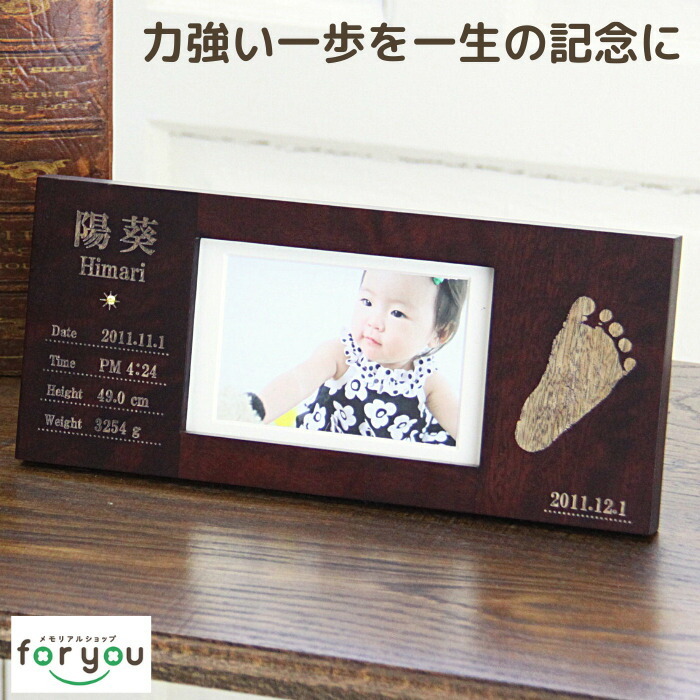 ★サイズ/縦135mm 横300mm 厚さ18mm ★彫刻面サイズ/縦135mm 横80mm ×2ケ所 ★材質/天然木製フォトフレーム スワロフスキークリスタル誕生石 ★彫 刻/足形1つ お名前 生年月日 出生時間 身長 体重 足型採取日 ※彫刻の情報に関しましては、お申し込み後、弊社から送らせていただくお仕立て券(お申込書)にご記入ください。 ※この商品は足形のみでの対応となります。手形では作成出来ませんので予めご了承ください。 ★写真サイズ/L版×1枚 ※写真は自由に差し替えできます。 〜お仕立券について〜 ★お仕立券はご注文確定後即日、ご指定の送付先にメール便でお届けします。 〜ご注文時の注意事項〜 ★ご注文画面の【お届け先・住所】は最初に送らせていただくお仕立券の送付先になります。 ★出産祝い(ギフト)でご希望の場合は「ギフト用」をチェックしてください。ご希望ございましたらお仕立券に熨斗を付けてお届けします。 ※内祝いの場合は完成品に熨斗を付けてお届けします。 〜その他〜 ・手形・足形のとり方 もっと詳しく⇒ ・皆様からよくある質問 もっと詳しく⇒ | |