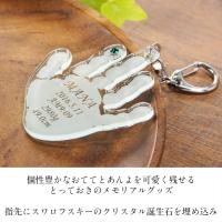 ★サイズ/手形・足形のサイズによる ★材質/ガラス色アクリル スワロフスキークリスタル誕生石 キーホルダー又はボールチェーン ★彫刻/手形(足形) お名前 生年月日等 ※彫刻情報、字体のご選択はお申し込み後、弊社から送らせていただくお仕立て券(お申込書)にご記入ください。 -お仕立券について- ★お仕立券はご注文確定後、即日ご指定の送付先にメール便にてお届けいたします。 -ご注文時の注意事項- ★こちらの商品は手形もしくは足形1つの金額となっております。 ★ご注文画面の【お届け先・住所】は最初に送らせていただくお仕立券の送付先になりますのでご注意ください。 ★出産祝い(ギフト)でご希望の場合は「ギフト用」をチェックしてください。ご希望ございましたらお仕立券に熨斗を付けてお届けします。 ※内祝いの場合は完成品に熨斗を付けてお届けします。 ★こちらの商品はお仕立券・完成商品共にメール便での発送となります。 -ご注文の流れ 他- ・手形・足形のとり方 もっと詳しく⇒ ・無料ラッピング・のし・メッセージカード もっと詳しく⇒ ・皆様からよくある質問 もっと詳しく⇒ | |