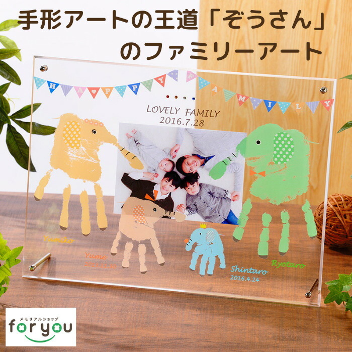 | PR:世界中で話題の手形アートメモリアルが家族タイプのフォトフレームタイプになって登場! 家族みんなの手形が手形アートの大定番の「ぞう」に大変身!! オプションでフレームをよりカッコよく飾る浮かせて壁に取り付ける金具も販売しています。 |