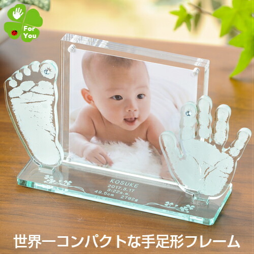 <<この商品は1歳の誕生日を迎えるまでのお子様の手足形での作成となります。>> ★土台サイズ/縦50mm 横140mm 厚さ5mm フォトフレームサイズ/縦100mm 横100mm 厚さ10mm 手足形サイズ/手足形の大きさによる ★材質/土台 手形 足型 ⇒ガラス色アクリル フォトフレーム⇒透明アクリル スワロフスキークリスタル誕生石 ★彫 刻/ 1:足形もしくは手形1つ お名前 生年月日 出生時刻 身長 体重 クローバー彫刻 2:両手両足型のうちいずれか2つ お名前 生年月日 出生時刻 身長 体重 クローバー彫刻 ※1は片手もしくは片足タイプ 2は両手両足型のうちいずれか2つタイプ(+2500円 税別)です。 ※ご注文時にプルダウンで追加金額をご選択いただいた場合の正式な金額は、ご注文後当ショップのご注文確認メールにて金額を訂正してご案内させていただきます。 ※彫刻の情報に関しましては、お申し込み後、弊社から送らせていただくお仕立て券(お申込書)にご記入ください。 ★写真サイズ/90mm×90mm角×1枚 ※写真は自由に差し替えできます。 〜お仕立券について〜 ★お仕立券はご注文確定後即日、ご指定の送付先にメール便でお届けします。 〜ご注文時の注意事項〜 ★ご注文画面の【お届け先・住所】は最初に送らせていただくお仕立券の送付先になります。 ★出産祝い(ギフト)でご希望の場合は「ギフト用」をチェックしてください。ご希望ございましたらお仕立券に熨斗を付けてお届けします。 ※内祝いの場合は完成品に熨斗を付けてお届けします。 〜ご注文の流れ 他〜 ・手形・足形のとり方 もっと詳しく⇒ ・皆様からよくある質問 もっと詳しく⇒ | |