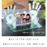 ★ 土台サイズ/縦160mm 横280mm 厚さ5mm フォトフレームサイズ/縦120mm 横175mm 厚さ10mm 手足形サイズ/手足形の大きさによる ★材質/ 土台 手形(足形)⇒ガラス色アクリル(5mm厚) スワロフスキークリスタル誕生石 フォトフレーム⇒透明アクリル(5mm厚×2枚) ※横幅は手形 足形のサイズにより異なります。 ★彫 刻/家族全員の手形(足形) お名前 生年月日 身長 体重 メッセージ ※彫刻の情報に関しましては、お申し込み後、弊社から送らせていただくお仕立て券(お申込書)にご記入ください。 ★写真サイズ/はがきサイズ×1枚 (横型) ※写真は自由に差し替えできます。 〜お仕立券について〜 ★当ショップの手足形キット(600円税別)は1歳位までのお子様が対象となります。大人や大きなお子様の手形は白い紙に朱肉かスタンプで採取いただくか、手をスマホなどで写真に撮ってお送りください。(小さなお子様の手足も写真に撮ってお送りいただいても大丈夫です。) ★お仕立券はご注文確定後即日、ご指定の送付先にメール便でお届けします。 〜ご注文時の注意事項〜 ★ご注文画面の【お届け先・住所】は最初に送らせていただくお仕立券の送付先になります。 ★出産祝い(ギフト)でご希望の場合は「ギフト用」をチェックしてください。ご希望ございましたらお仕立券に熨斗を付けてお届けします。 ※内祝いの場合は完成品に熨斗を付けてお届けします。 〜ご注文の流れ 他〜 ・手形・足形のとり方 もっと詳しく⇒ ・皆様からよくある質問 もっと詳しく⇒ | |